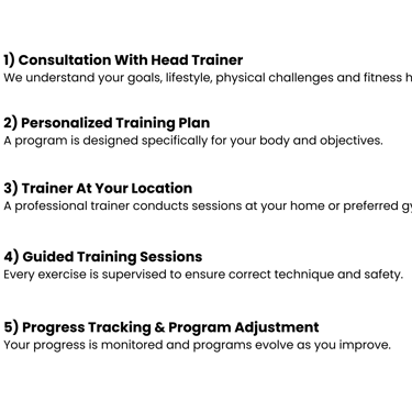 A structured and personalized training experience guided by professional trainers and built to deliver real, measurable results.